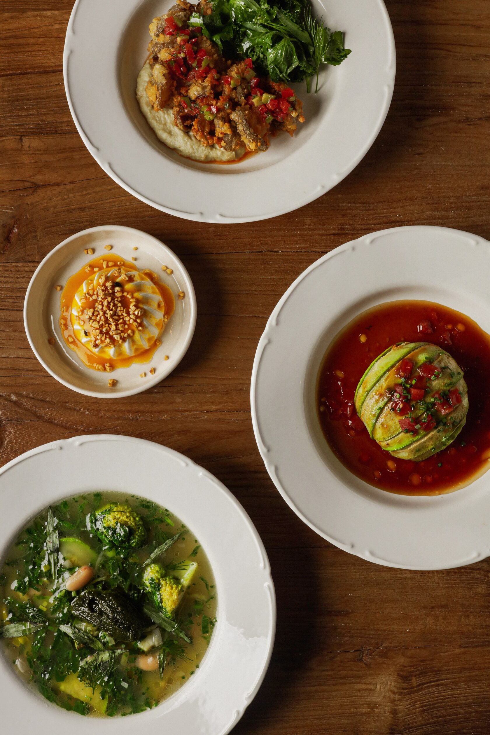 Постное меню — это не скучно, это повод взглянуть на привычные рецепты под другим углом. В специальном меню от Анатолия Левизова ароматный минестроне на овощном бульоне с томатной водой и песто без пармезана, нежный голубец из цукини с рисом и вешенками под соусом унаги, хрустящие жареные вешенки с хумусом из артишоков и свежими травами, а на десерт — кокосовая панна-котта манго–маракуйя. Лёгкие ингредиенты, продуманные сочетания и внимание к деталям — пост без ощущения ограничений.